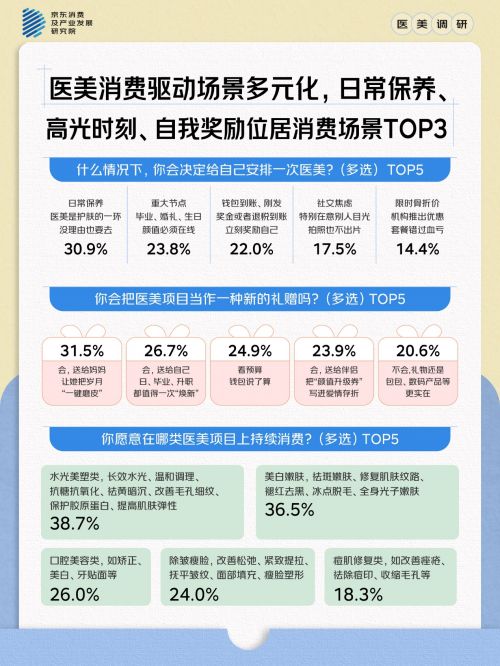 医美消费驱动场景多元化,日常保养、高光时刻、自我奖励位居消费场景TOP3