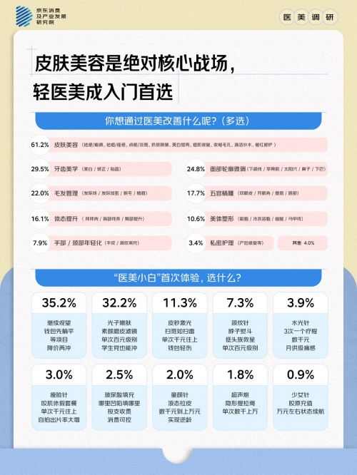 从社交媒体的讨论热度到身边越来越多人的体验经历,医美走向大众化是不是进入了新的加速阶段?聚焦医美话题和医美消费,日前,京东消费及产业发展研究院联合京洞察发起线位消费者的对话,了解医美与大家生活的真实关联度,捕捉当下医美消费市场的真实动态,调研结果显示: